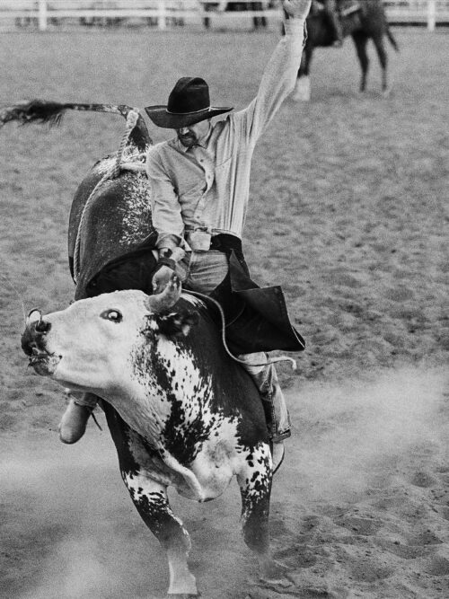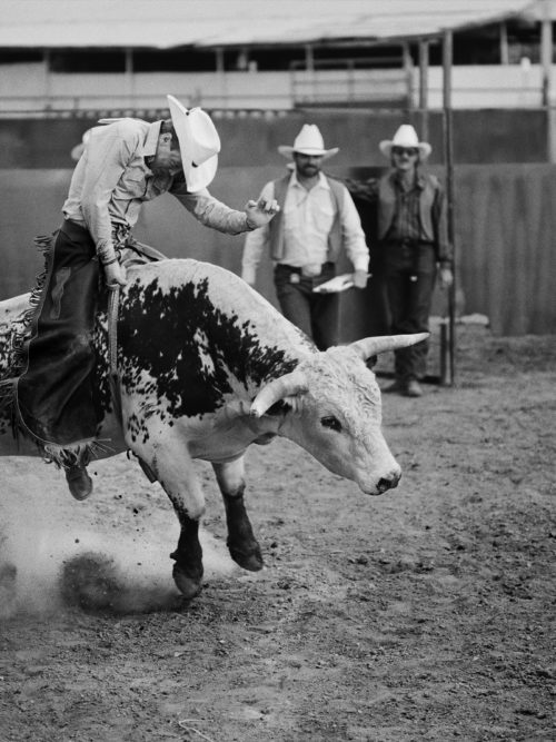 From the beginning, I brought my camera to all the rodeos, but as a rodeo competitor, I now had inside access. I could shoot close to the action – down on the arena floor and behind the chutes. I began photographing seriously as I got more involved.
