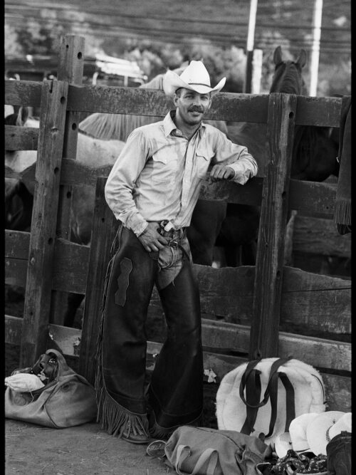 Many of the cowboys, my close friends, are no longer with us. These photographs have never been exhibited. I now want to share these images for two reasons: to memorialize these great experiences in gay rodeo and to honor the cowboys who competed.